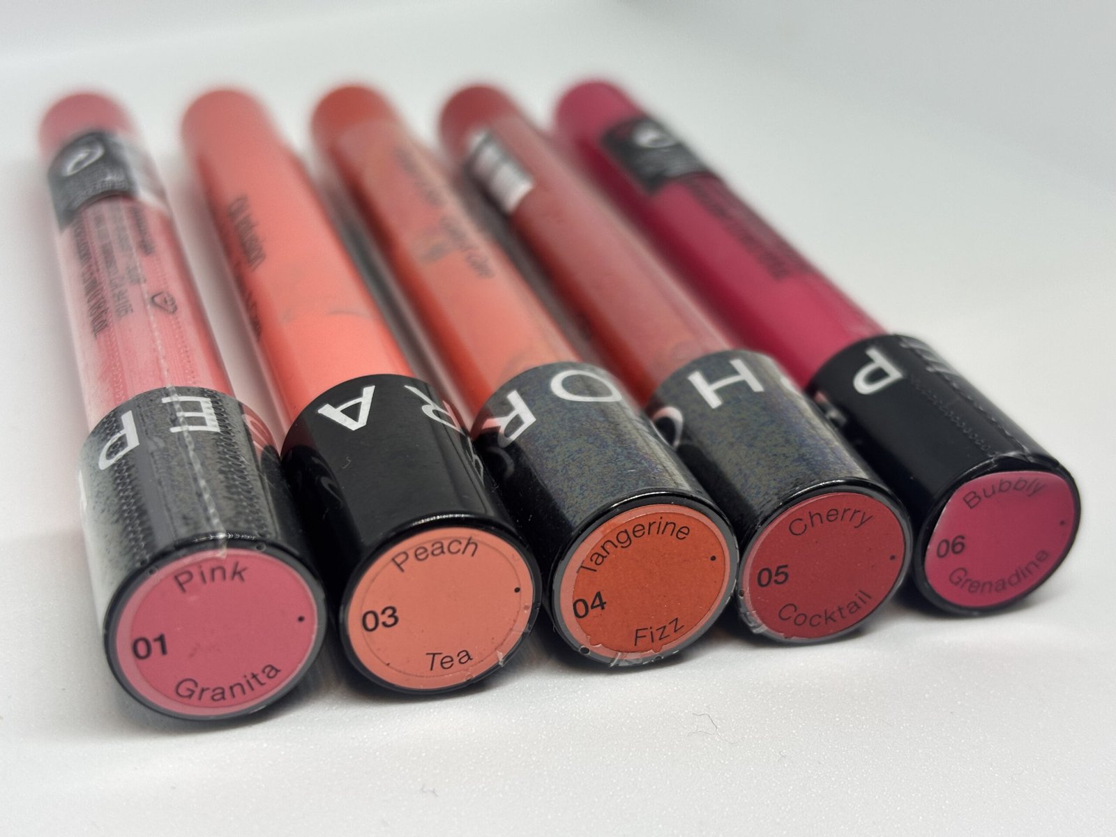 | colour: | 01 Pink, 03 Peach Tea, 04 Tangerine Fizz, 05 Cherry, 06 Bubbly Granadine |